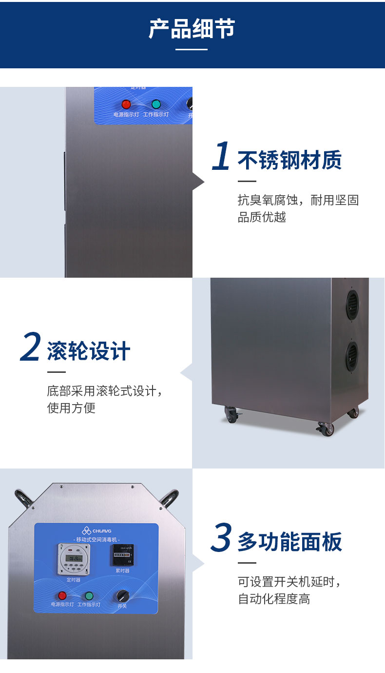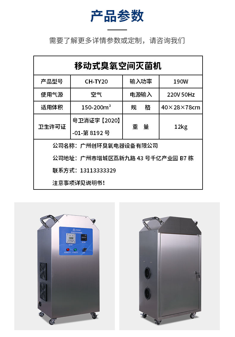 CH-TY20移(yi)動(dong)式臭氧空間(jian)(jian)滅菌(jun)機,主要用于空間(jian)(jian)消毒,移(yi)動(dong)式方便消毒各個空間(jian)(jian),而且(qie)臭氧濃度高,殺(sha)菌(jun)效果好。